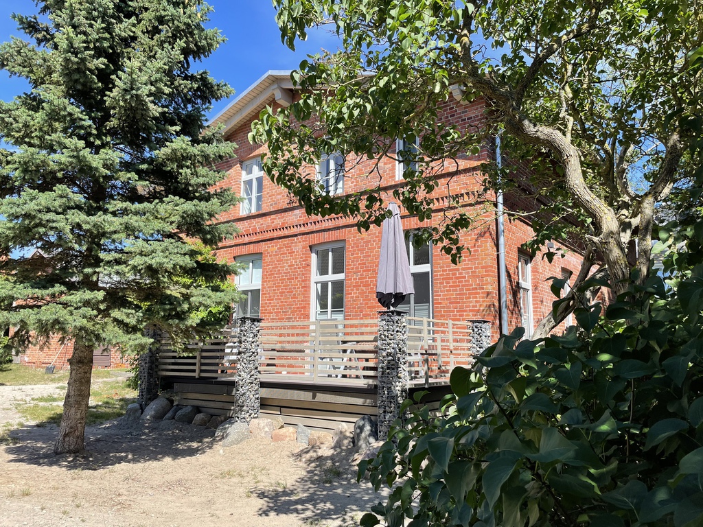 Fernab von Ferienhaussiedlungen steht das Backsteingebäude aus dem Jahre 1895 auf einem knapp 1600 qm großen Grundstück mit seinem alten Baumbestand.